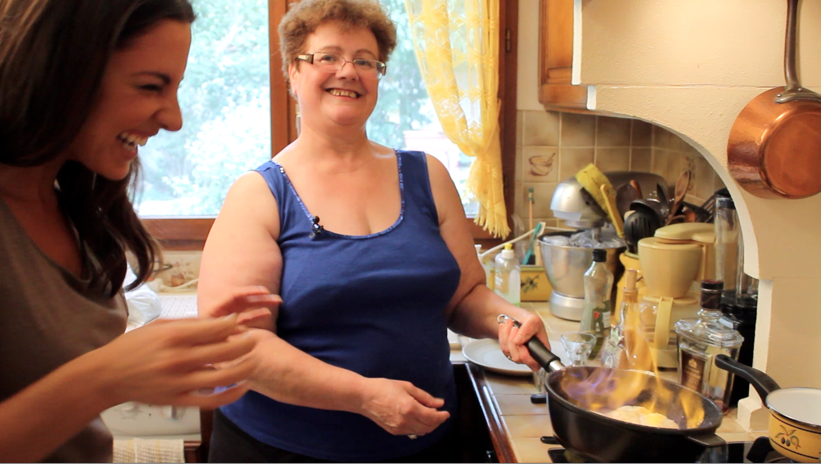 "Oh we're just goingto add a tad of Cognac to the pan now...." says Martine